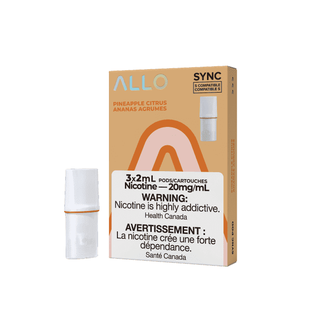 Shopping with Vape Shop Near Me ensures convenience and reliability. Our ALLO Sync Pineapple Citrus Vancouver Delivery service guarantees that local customers receive their pods quickly. Each pod is authentic and quality-checked, giving you confidence with every purchase.